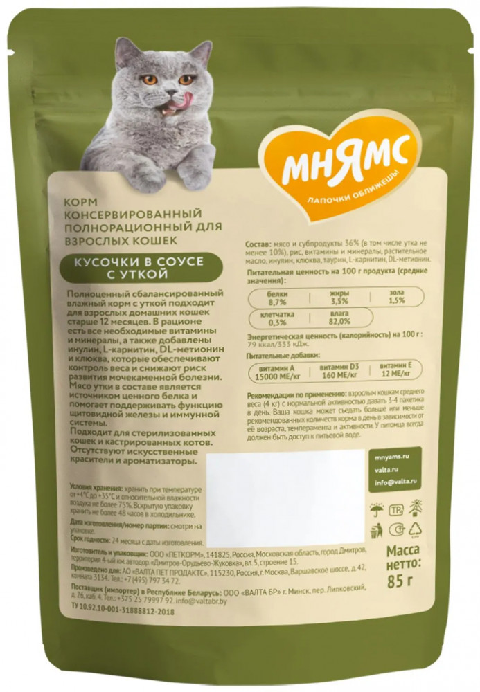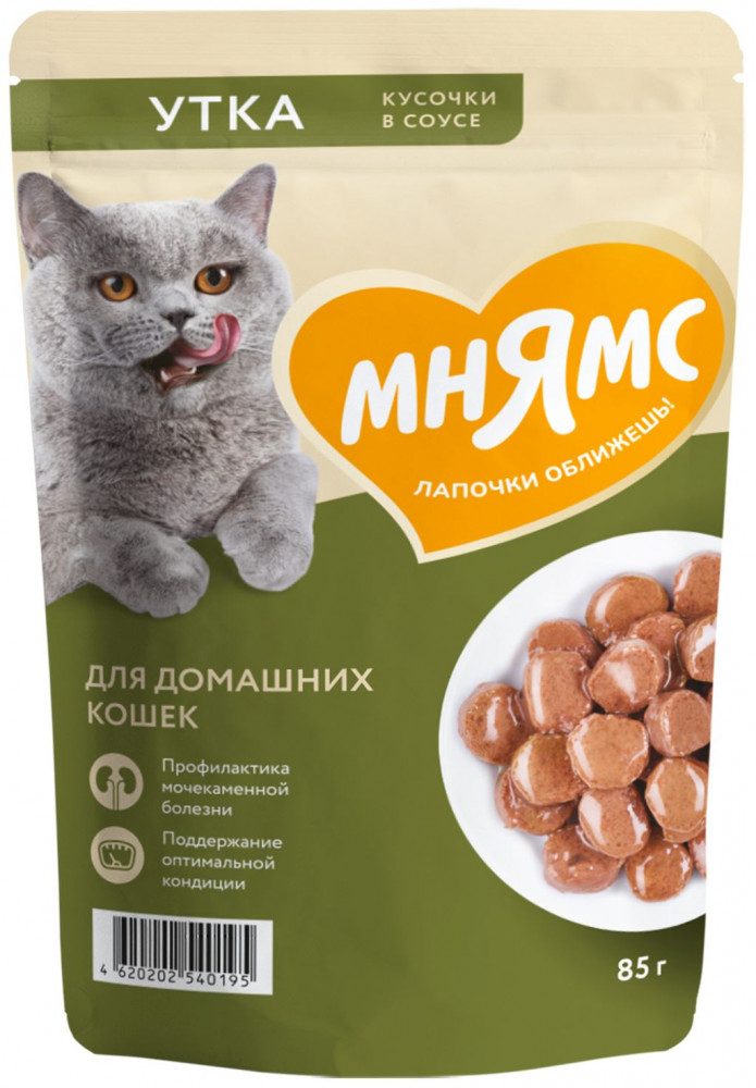 Мнямс Корм для домашних кошек «Кусочки в соусе с уткой»