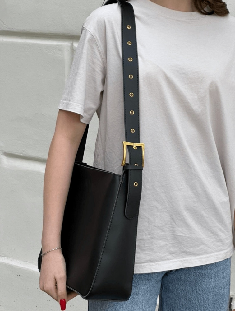 Эта стильная сумка шоппер станет идеальным дополнением к вашему повседневному образу. Изготовленная из высококачественной экокожи, она отличается прочностью и долговечностью. Сумка имеет классический черный цвет, что делает ее универсальной для любого наряда. Длинный регулируемый плечевой ремень (92 см) позволяет носить сумку как на плече, так и через плечо, обеспечивая комфорт в использовании. Застежка на молнии надежно защищает ваши вещи, а один внутренний отсек предоставляет достаточно места для хранения необходимых мелочей. Глубина сумки составляет 11 см, ширина — 28 см, высота — 28 см, что делает ее достаточно вместительной для повседневного использования. Эта модель подходит для женщин, которые ценят стиль и функциональность. Сумка идеально подходит для классического и повседневного стиля, что делает ее отличным выбором для любого случая.
