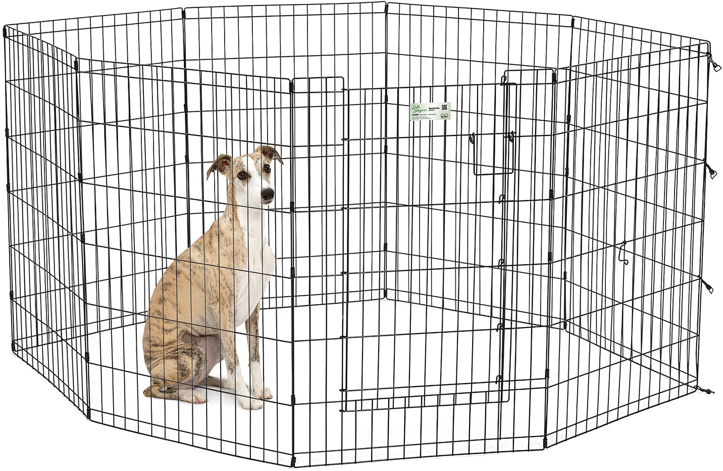 Вольер для животных 8 панелей с дверью для использования в помещении и на улице. Запатентованная дверная система MAXLock повышает безопасность, предоставляя множество точек блокировки по периметру двери. Эргономичная ручка-замок позволяет легко и удобно управлять дверью одним движением, без сгибания коленей. Прочное черное покритие вольера Electro-Coat обеспечивает долговечную защиту. Вольер легко складывается для удобного хранения и транспортировки, легко собирается, не требуется никаких инструментов или дополнительных деталей. В комплект включены угловые усилители, которые добавляют вес и поддерживают конфигурацию ограждения, они так же могут быть использованы для защиты напольного покрытия, и крепежи, которыми оснащена функциональная безопасная каркасная дверца. Ограниченная площадь1.5 квадратных метра. Возможные конфигурации вольера: квадрат, прямоугольник, восьмиугольник. Размер ячейки: 3,8×15,2 см. Размер одной панели 61×91h см. |