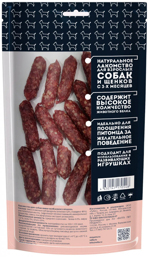 Мнямс Лакомство для собак «Мини-колбаски из ягненка»