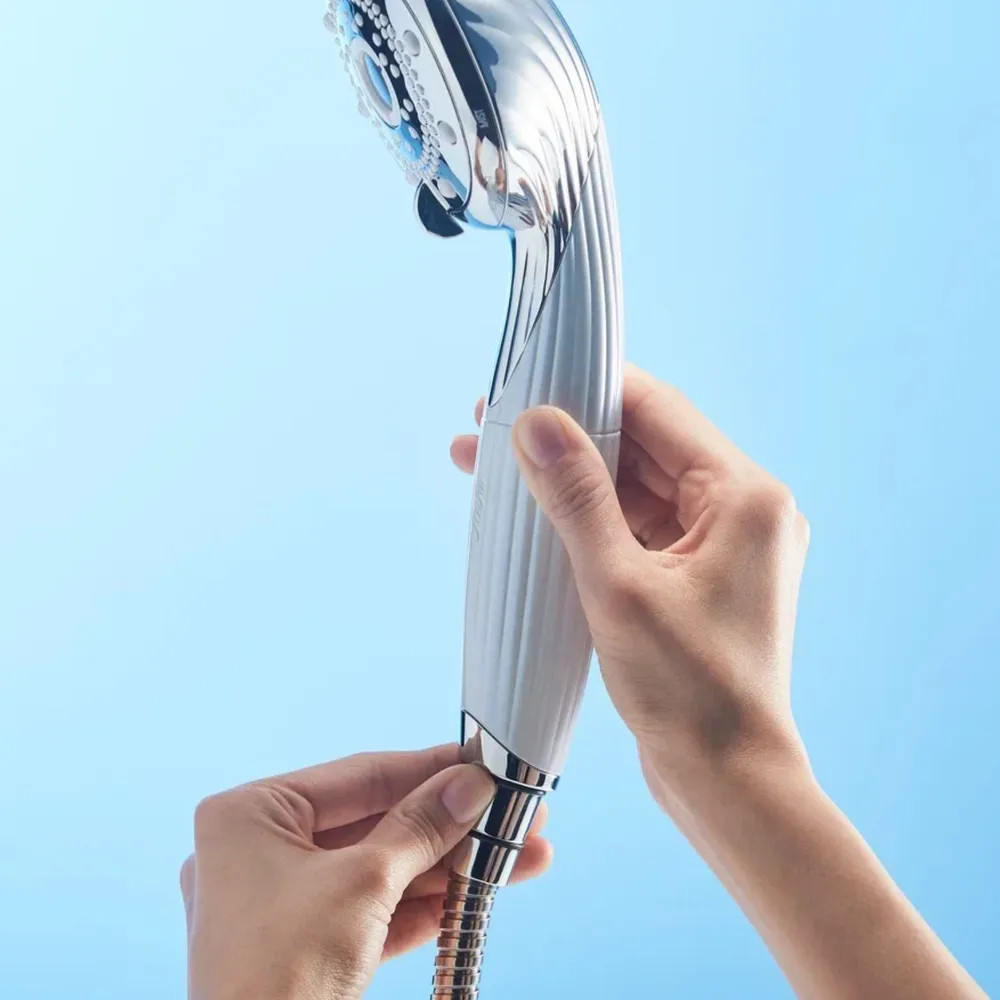 ReFa Fine bubble pure — спа-лейка, превращающая поход в душ в настоящее искусство релаксации и ухода за кожей. Лейка сочетает в себе инновационные японские технологии, позволяющие деликатно очищать кожу и воспроизводить эффект шелковой ванны. Чтобы вода не раздражала кожу головы и тела, компания ReFa внедрила в конструкцию этой душевой лейки японскую технологию Fine Bubble. Мини-пузырьки и микропузырьки намного меньше тех, которые мы привыкли видеть, когда принимаем ванну, и обладают высокой очищающей способностью, превращающей принятие ванны в роскошный бьюти-ритуал. Размер и количество отверстий в лейке, а также двойная кавитация преобразует поток воды в шелковисто-мягкий.