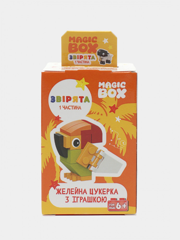 MagicBox — это волшебная коробочка-сюрприз, в которой тебя ждет игрушка-конструктор «Коллекция Звери, часть 1» и вкусные желейные конфеты Bebeto. Вся коллекция — это 12 доисторических героев, которых можно собрать вместе или играть отдельно. А еще шок-новость! Такого ты точно не ожидал! Потому что если собрать все 12 коробочек вместе, то из всех общих деталей ты можешь сложить одного динозавра-великана! Открывай, коллекционируй и создавай свое собственное доисторическое приключение!
