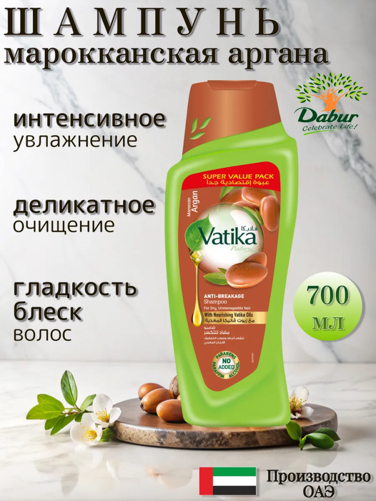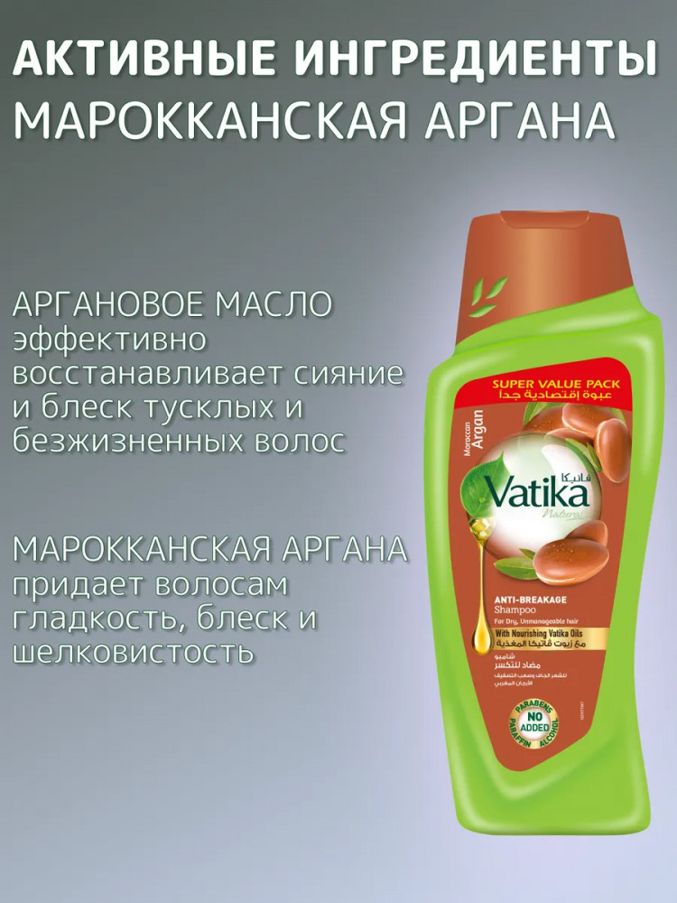 Vatika Naturals Шампунь для сухих и непослушных волос «Арган. Мягкое увлажнение. Anti-Breackage»