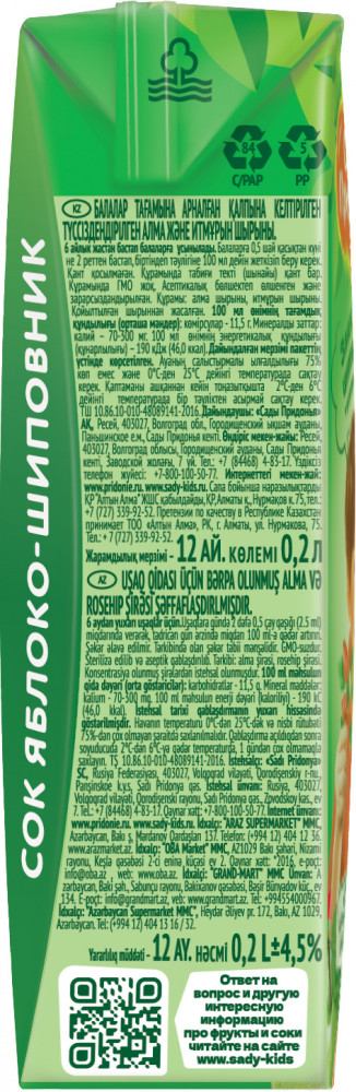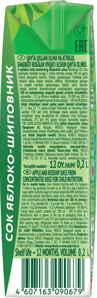 Сады Придонья Сок осветлённый «Яблоко-шиповник»