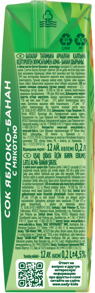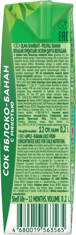 Сады Придонья Сок восстановленный с мякотью «Яблоко-банан»