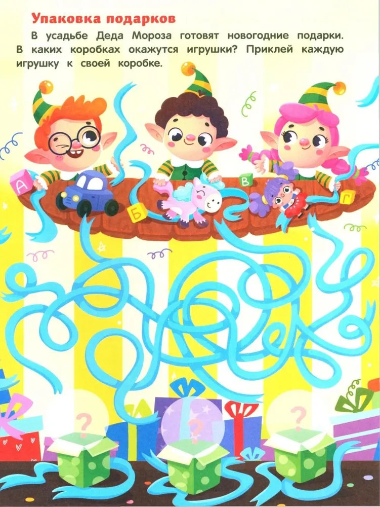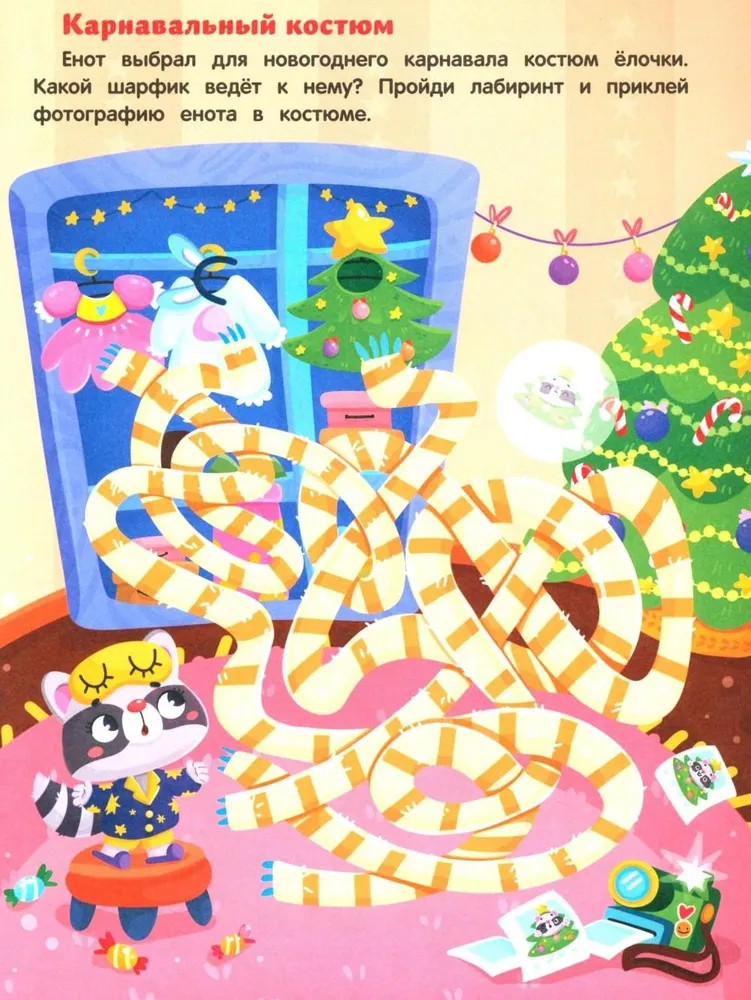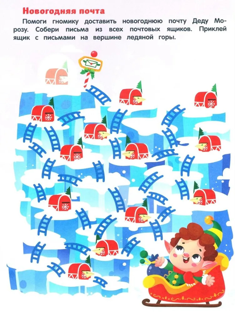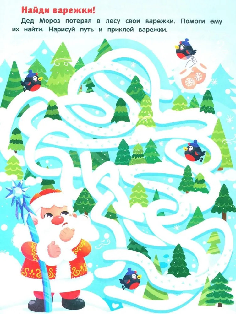 Серия: Лабиринты с наклейками Игры — любимое занятие детей. Книги серии «Лабиринты с наклейками» увлекают интересными заданиями и развивают логику, внимательность, мелкую моторику. В книге «Новогодние приключения» малышу нужно не просто пройти лабиринты, а выполнить важные задания: купить ёлку на новогоднем базаре, найти варежки Деда Мороза или доставить ему новогоднюю почту. |