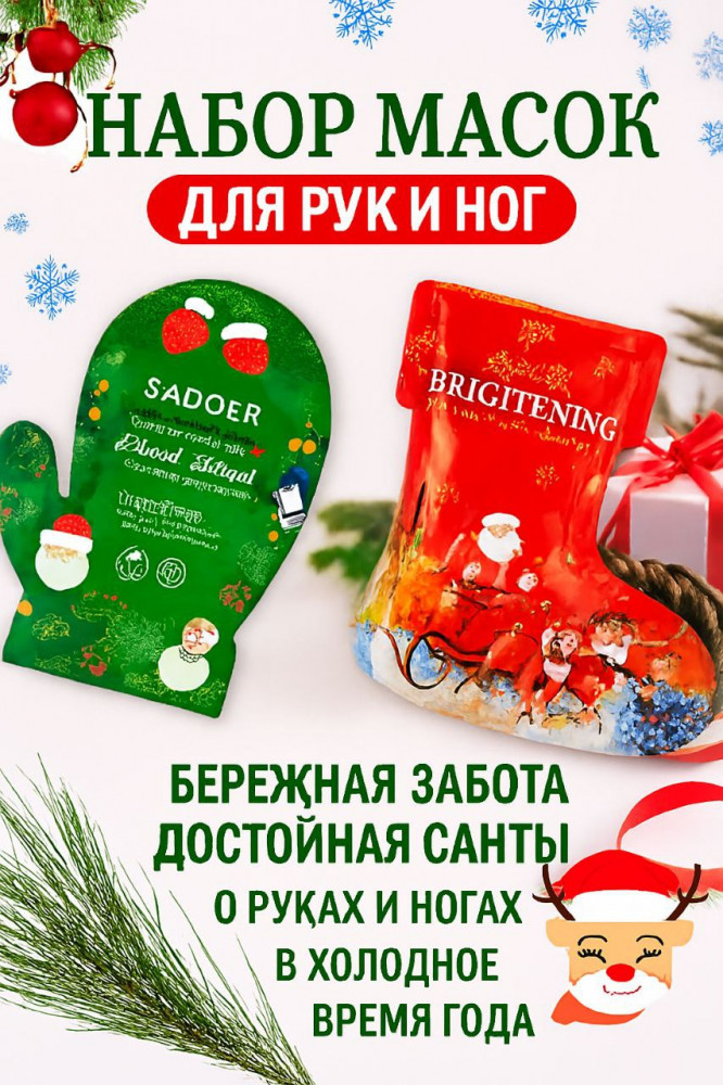 Дарите радость и заботу о близких в этот Новый год с уникальным подарком — набором новогодних масок для рук и ног в оригинальной упаковке! Этот набор выполнен в виде симпатичного сапожка и рукавицы, что делает его не только полезным, но и очаровательным подарком для близких. Маски для рук и ног обогащены питательными компонентами, которые бережно ухаживают за кожей в холодные зимние дни. Они помогут сохранить мягкость и увлажненность вашей кожи, защитят от сухости и шелушения. Не упустите возможность порадовать своих родных и друзей таким практичным и заботливым подарком. Заботьтесь о своих близких и делайте приятные сюрпризы вместе с набором новогодних масок для рук и ног! |