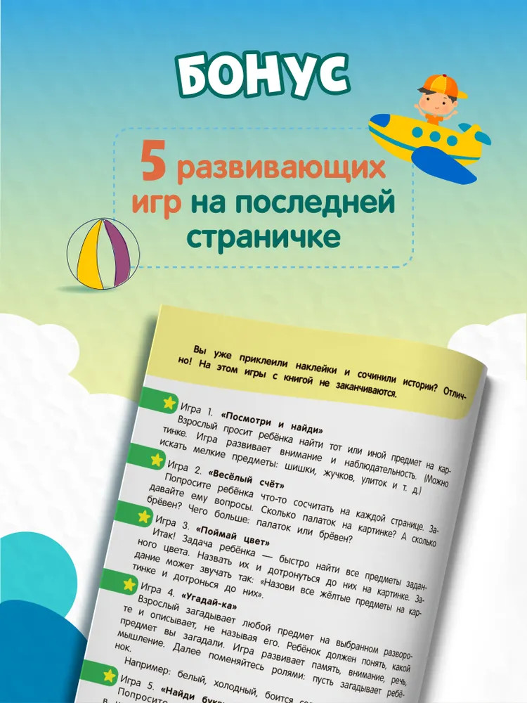 Серия: Оживи историю Книги серии «Оживи историю» — это весёлые и полезные игры с наклейками. В книге «Приключения зверят» 65 наклеек и 8 игровых полей, где можно создавать свой сюжет и придумывать продолжение историй. . После этого игры с книгой только начинаются! Пять развивающих игр: «Посмотри и найди», «Весёлый счёт», «Угадай-ка», «Поймай цвет», «Найди букву» — помогут родителям с пользой провести время с ребёнком. Играйте и развивайтесь! |