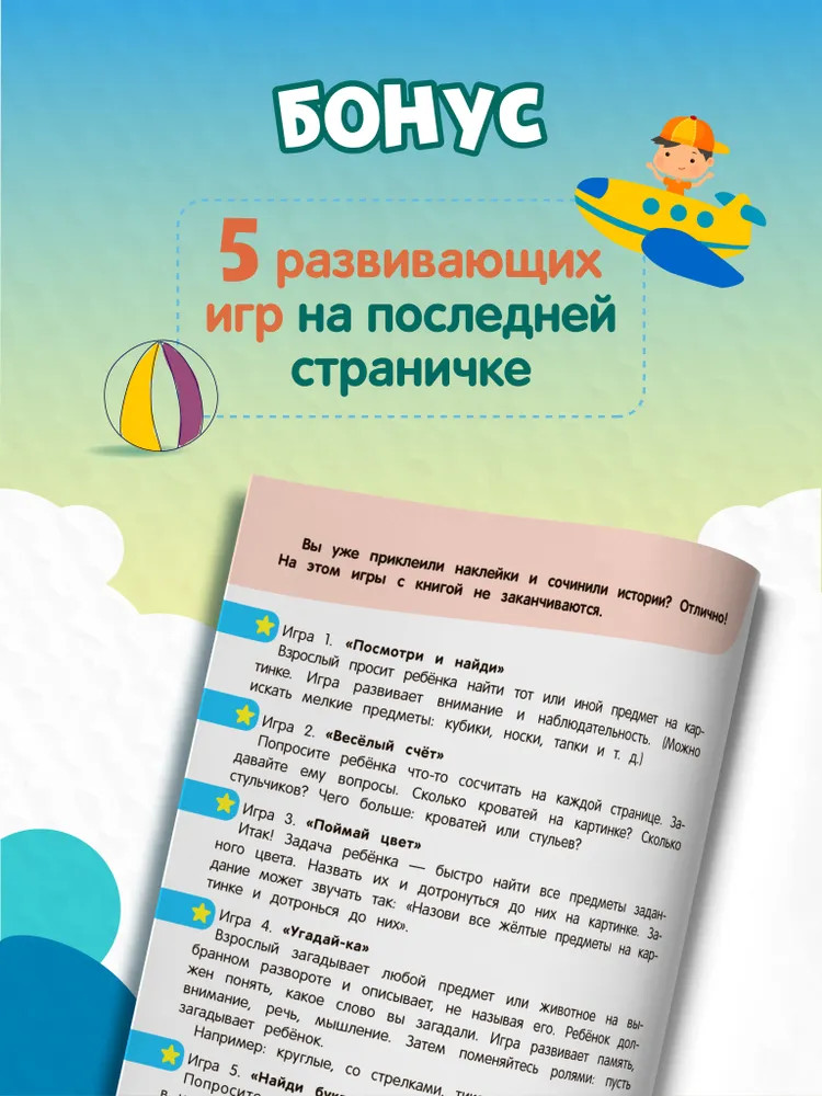 Серия: Оживи историю Книги серии «Оживи историю» — это весёлые и полезные игры с наклейками. В книге «Чудесный детский сад» 100 наклеек и 8 игровых полей, где можно создавать свой сюжет и придумывать продолжение историй. После этого игры с книгой только начинаются! Пять развивающих игр: «Посмотри и найди», «Весёлый счёт», «Угадай-ка», «Поймай цвет», «Найди букву» — помогут родителям с пользой провести время с ребёнком. Играйте и развивайтесь! |