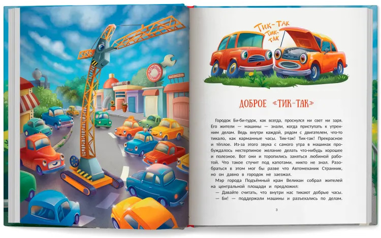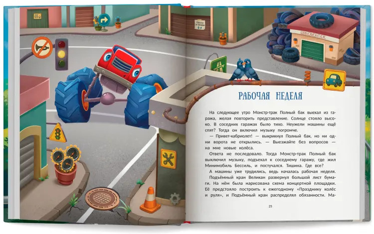 Серия: Сказочное детство В городке Би-би-гудке у каждой машинки есть любимое дело: Подъёмный кран Великан строит гаражи, Грузовик Озорник привозит стройматериалы, а Автовышка Трусишка меняет уличные фонари. Все они трудятся с радостью, и под их капотами тихо постукивает доброе «тик-так». Но однажды в городке появляется новый житель — Монстр-трак Полный бак. Он целыми днями выделывает акробатические трюки и считает себя самым лучшим из автомобилей. Сможет ли Монстр-трак понять, что чудеса творят не огромные колёса и мощный двигатель, а полезное дело и доброе «тик-так» внутри? |