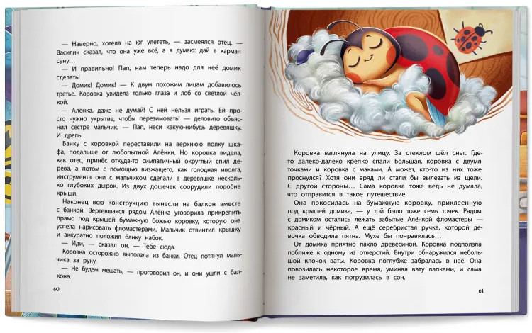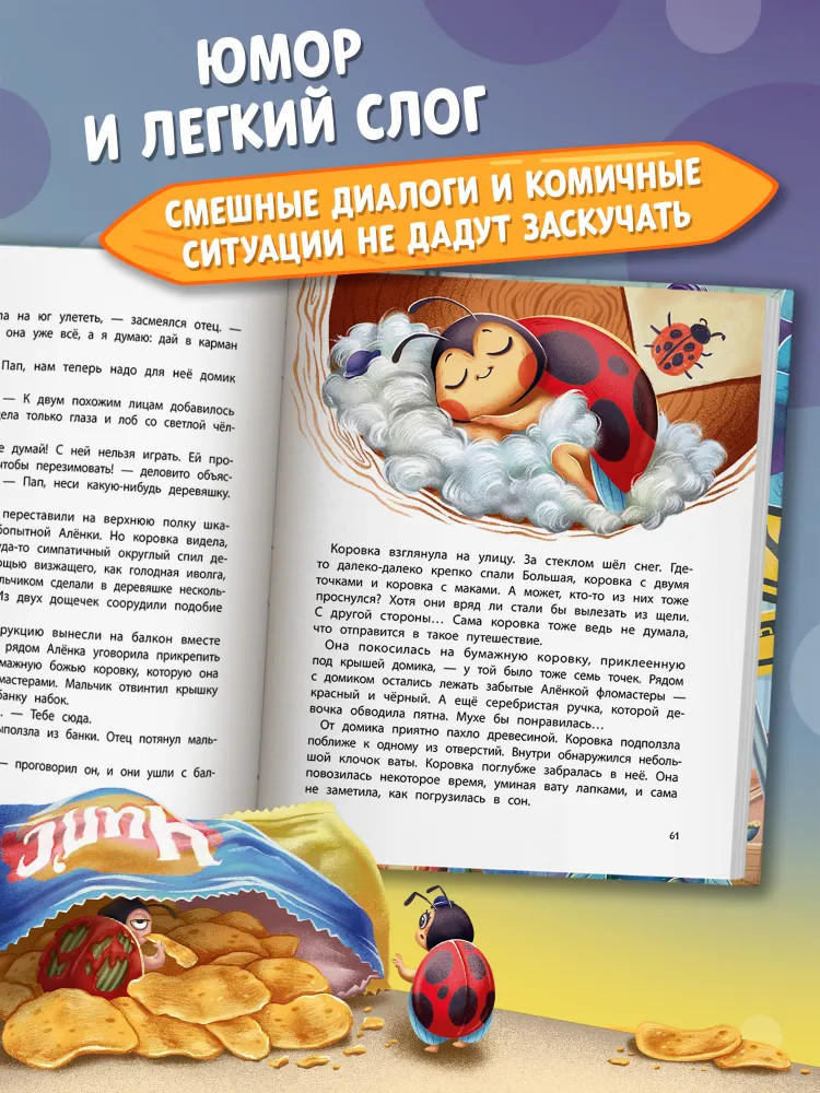 Серия: Сказочное детство Божья коровка вместе с подругами устраивается на зимовку, чтобы благополучно проспать холода и проснуться весной. Но что-то идёт не так: она просыпается посреди зимы, а потом и вовсе оказывается в электричке, которая увозит её всё дальше и дальше от дома. Надо вернуться, но как? На пути коровке встречаются жизнерадостная муха, невозмутимый жук-носорог, добродушная оса... Да что там, она даже в любовную историю успевает влипнуть! Причём в буквальном смысле слова. События уводят её всё дальше и дальше от подруг, и в конце концов встаёт вопрос: а стоит ли вообще возвращаться? Ведь в мире столько всего интересного и неизученного. Весёлая и динамичная история от детского автора Ирины Бутенко расскажет ребёнку о том, что не нужно бояться нового и что выход есть всегда: главное — никогда не сдаваться! |