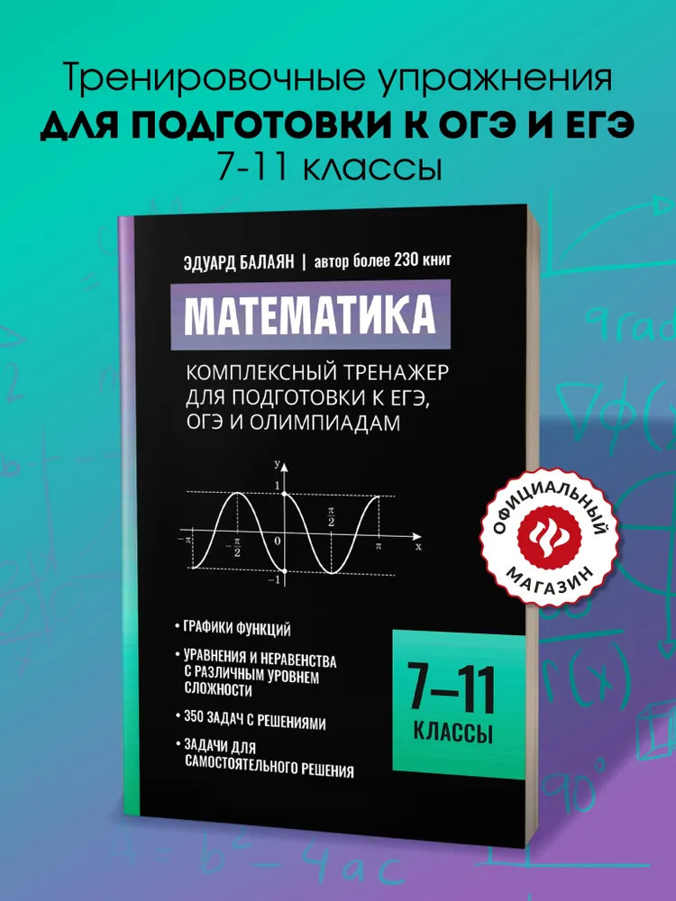 Серия: Большая перемена В предлагаемом пособии содержатся тренировочные упражнения по всему школьному курсу алгебры и начал анализа, включающие графики функций, уравнения и неравенства с различным уровнем сложности. Ценность этих упражнений в том, что каждое из них объединяет несколько тем из программы математики, а после преобразований они решаются достаточно просто. Эти упражнения способствуют развитию логического мышления, созданию проблемной ситуации на уроке, закрепляют усвоение основных положений программы математики, а различные уровни сложности предлагаемого материала позволяют учителю вести дифференцированное обучение. Все упражнения снабжены решениями, в каждой главе приводятся задачи для самостоятельного решения. Пособие предназначено учащимся 7-11 классов общеобразовательных школ для подготовки к олимпиадам различного уровня и сдачи ЕГЭ, ОГЭ, учителям математики, а также учащимся специализированных математических классов, школ и лицеев с углубленным изучением математики. |