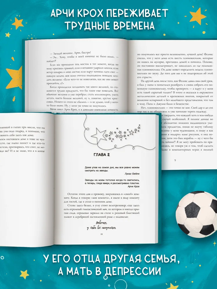 Серия: Волшебный Феникс Арчи Крох переживает трудные времена. Его обижают в школе, его выбирают в команду в последнюю очередь; в его доме стало грустно и тихо с тех пор, как ушел папа, и кажется, что его везучесть навсегда иссякла.Но все начинает налаживаться, когда Арчи ударяется головой и буквально видит звезду: перед ним стоит его любимый знаменитый футболист и предлагает исполнить девять его желаний.Это просто невероятно! Неограниченное количество мороженого, целый день поедания пиццы и игры на Xbox, месть хулиганкам, превращение в звезду футбольного турнира — наконец-то все его мечты сбудутся! Сможет ли Арчи обрести счастье, загадав желание? Или он поймет, что волшебные желания — это, конечно, прекрасно, но только у него есть настоящая сила, способная изменить его жизнь? |