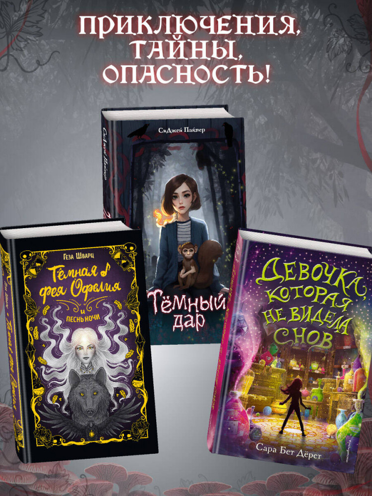 Серия: Школа Ферн для магических существ Первая часть фэнтези-дилогии СиДжей Пайпер! Атмосферное чтение для фанатов сериала «Уэнсдей». Розмари Торп всегда была не такой, как её сверстники. Главное отличие девочки — способность предвидеть чужие смерти, что, конечно же, мало кому нравилось. И когда слухи о ее даре начали распространяться, Розмари оказалась в Междумирье, в Школе Ферн. В ней она нашла новых друзей: баньши Трим, чей крик может убить, и джинна Эсси, исполняющего желания. Но как только Розмари появилась в школе, один из учеников пропал! И теперь троице друзей необходимо раскрыть тайну этого исчезновения. |