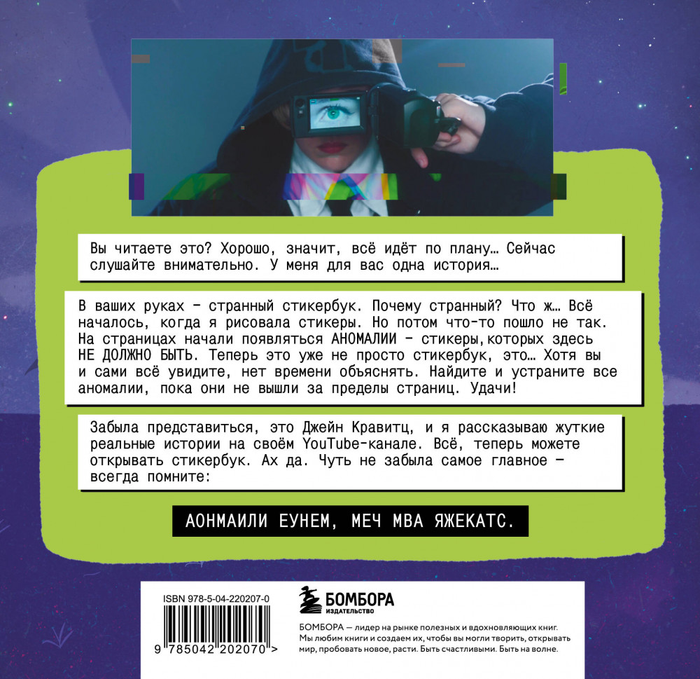 Серия: Джейн Кравитц. Стикербук от любимого блогера Вы читаете это? Хорошо, значит, всё идёт по плану... Сейчас слушайте внимательно. У меня для вас одна история... В ваших руках — странный стикербук. Почему странный? Что ж... всё началось, когда я рисовала стикеры. Но потом что-то пошло не так. На страницах начали появляться аномалии— стикеры, которых здесь не должно быть. Теперь это уже не просто стикербук, это... хотя вы и сами всё увидите, нет времени объяснять. Найдите и устраните все аномалии, пока они не вышли за пределы страниц. Удачи! Забыла представиться, это Джейн Кравитц, и я рассказываю жуткие реальные истории на своём YouTube-канале. Всё, теперь можете открывать стикербук. |