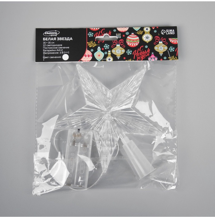 Luazon Lighting Верхушка на елку светодиодная «Звезда белая»новинка В данный момент этот товар отсутствует в продаже. Возможно, у нас найдется аналогичный или похожий товар здесь. Создайте волшебную атмосферу в вашем доме с этой изысканной светодиодной верхушкой на ёлку в форме звезды. Она станет идеальным завершением вашей новогодней ёлки, добавляя яркости и праздничного настроения. Эта верхушка выполнена из прозрачного пластика, что делает её лёгкой и удобной для установки на любую ёлку. Благодаря 10 светодиодам с белым свечением, она создает потрясающий визуальный эффект, который понравится как детям, так и взрослым. Верхушка работает от двух батареек типа AA (не входят в комплект), что обеспечивает её автономность и удобство использования. Материал и качество: Изготовлена из прозрачного пластика, что делает её лёгкой и прочной. Освещение: 10 светодиодов с белым свечением создают яркий и праздничный эффект. Питание: работает от двух батареек типа AA (не входят в комплект), что позволяет легко установить её на елку без необходимости в розетке. |