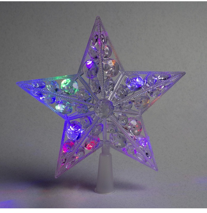 Традиционное украшение ёлочной верхушки в виде звезды привычно всем с детства. Новогодняя фигура не требует расходов на монтаж. Просто установите её в нужное место и подсоедините к сети. При выключенном свете аксессуар засияет наравне с гирляндой. Современные диоды не нагреваются, в отличие от ламп накаливания, что делает фигуру безопасной в эксплуатации. Верхушка на елку светодиодная «Звезда белая», 22 см, 15 LED, 220 В, свечение мульти. |