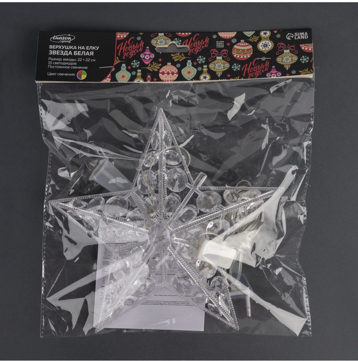 Luazon Lighting Верхушка на елку светодиодная «Звезда белая»новинка -35%