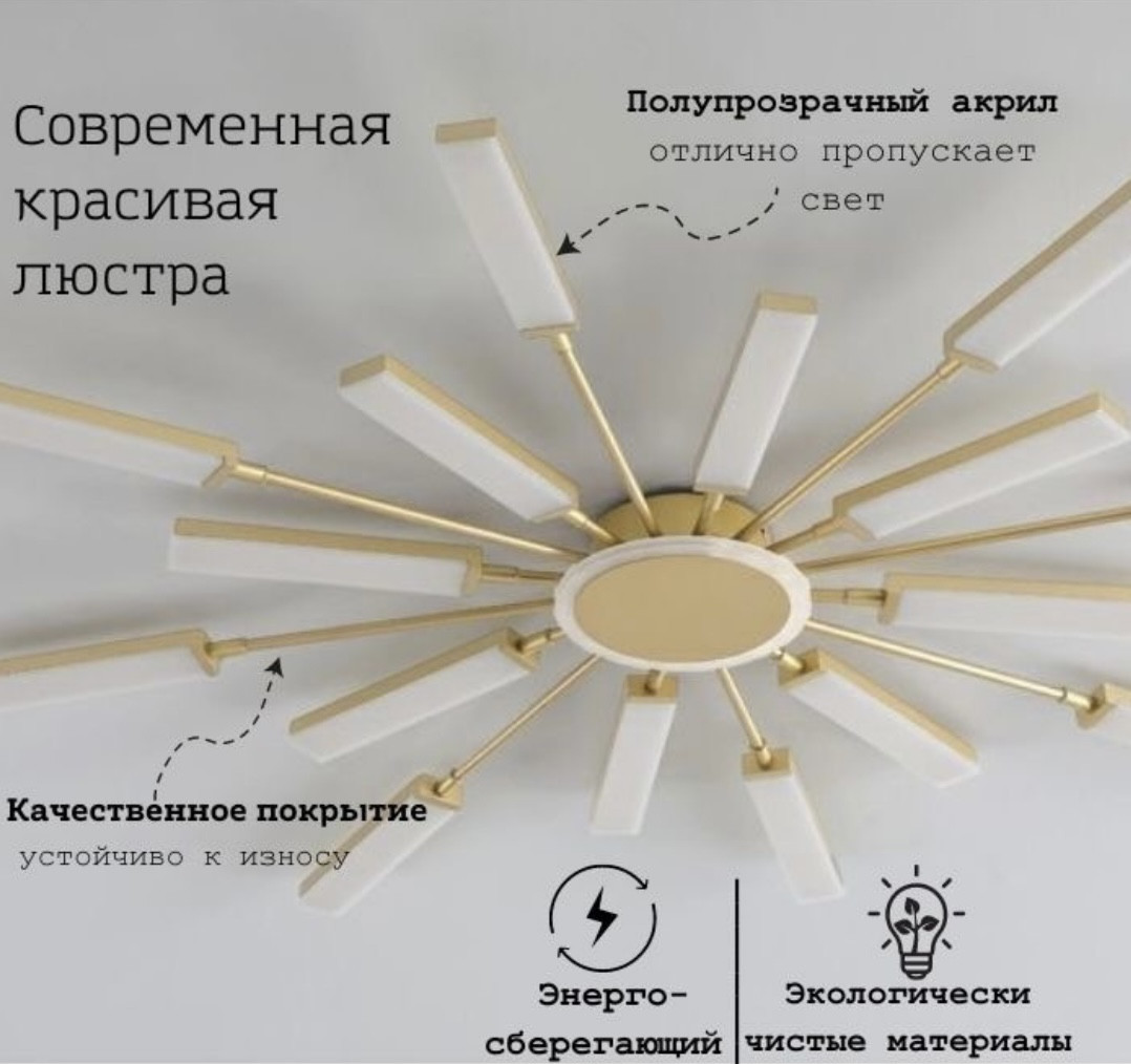 Люстра «Золотистое солнце»новинка В данный момент этот товар отсутствует в продаже. Возможно, у нас найдется аналогичный или похожий товар здесь. Элегантная и функциональная люстра, способная гармонично вписаться в интерьер любого стиля — от классики до современного минимализма. Выполненная из качественных материалов, она сочетает в себе изысканный дизайн и надежность. Люстра обеспечивает равномерное освещение помещения, создавая уютную и комфортную атмосферу. Идеально подходит для установки в гостиной, спальне, столовой или прихожей. Особенности бра, лампы: для всех видов потолков, включая натяжные, энергосберегающая, современный дизайн, регулируемая яркость: регулируется с помощью выключателя. |