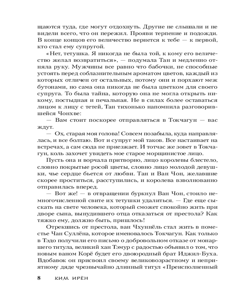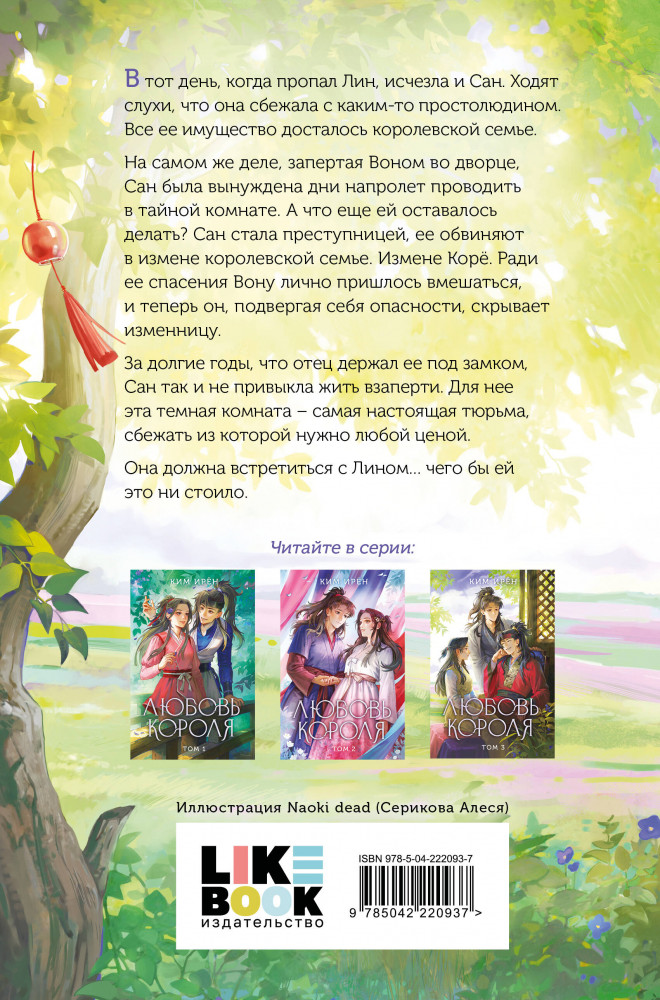 Серия: Young Adult. Лучшие азиатские дорамы В тот день, когда пропал Лин, исчезла и Сан. Ходят слухи, что она сбежала с каким-то простолюдином. Все ее имущество досталось королевской семье. На самом же деле, запертая Воном во дворце, Сан была вынуждена дни напролет проводить в тайной комнате. А что еще ему оставалось делать? Сан стала преступницей, ее обвиняют в измене королевской семье. Измене Корё. Ради ее спасения Вону лично пришлось вмешаться и теперь он, подвергая себя опасности, скрывает изменницу. За долгие годы, что отец держал ее под замком Сан так и не привыкла жить взаперти. Для нее эта темная комната — самая настоящая тюрьма, сбежать из которой нужно любой ценой. Она должна встретиться с Лином... чего бы ей это ни стоило. |