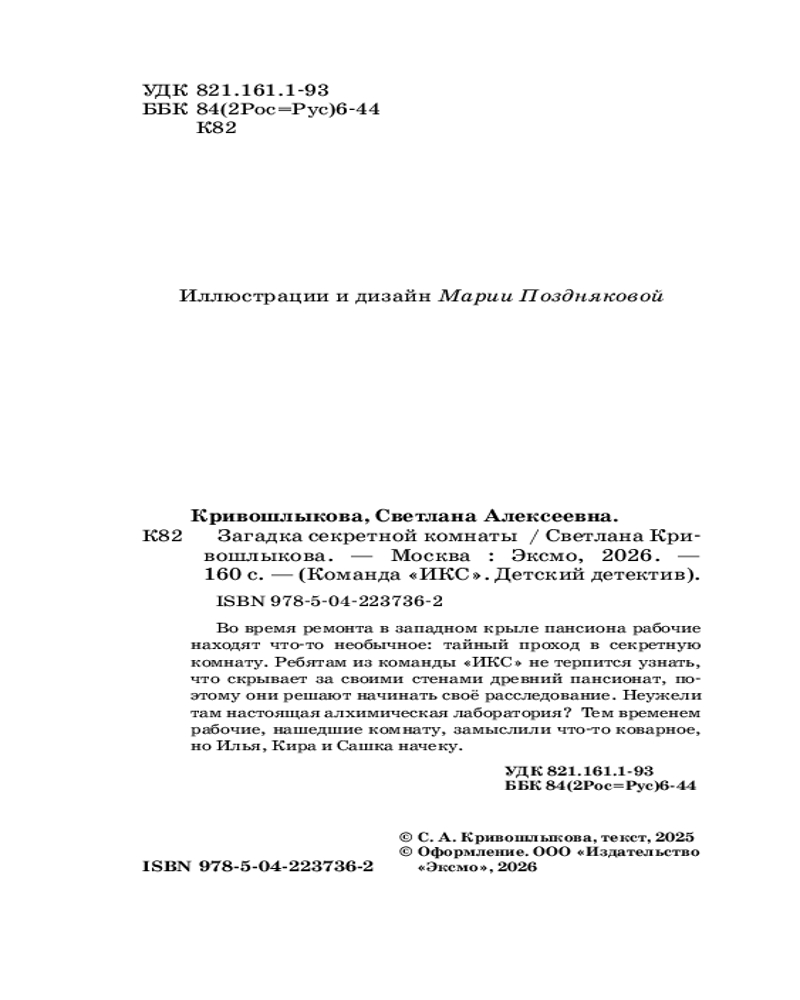 Новая детективная серия для поклонников «Чёрного котёнка» и «Мейзи Хитчинс»! Добро пожаловать в школу-пансион с вековой историей, где за старинными стенами скрываются самые необычные тайны! Трое друзей — Илья, Кира и Сашка — объединяются в команду «ИКС», чтобы расследовать загадочные события. Они учатся, дружат, ссорятся и мирятся... а ещё — берутся за дела, от которых даже у учителей бегут мурашки! Во время ремонта в западном крыле пансиона рабочие находят что-то необычное: тайный проход в секретную комнату. Ребятам из команды «ИКС» не терпится узнать, что скрывают древние стены, поэтому они решают начинать своё расследование. Неужели там настоящая алхимическая лаборатория? Тем временем рабочие, нашедшие комнату, замыслили что-то коварное, но Илья, Кира и Сашка начеку.
