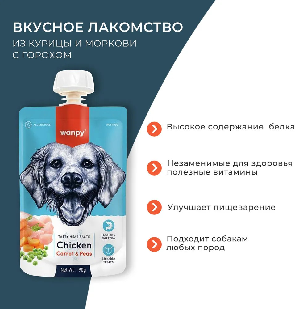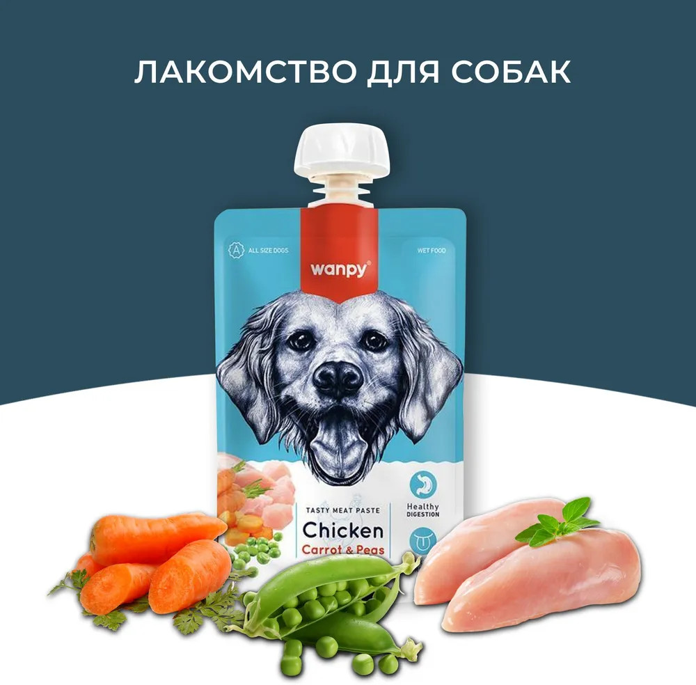 Wanpy Лакомство для собак «Мясной мусс из курицы и моркови с горохом»