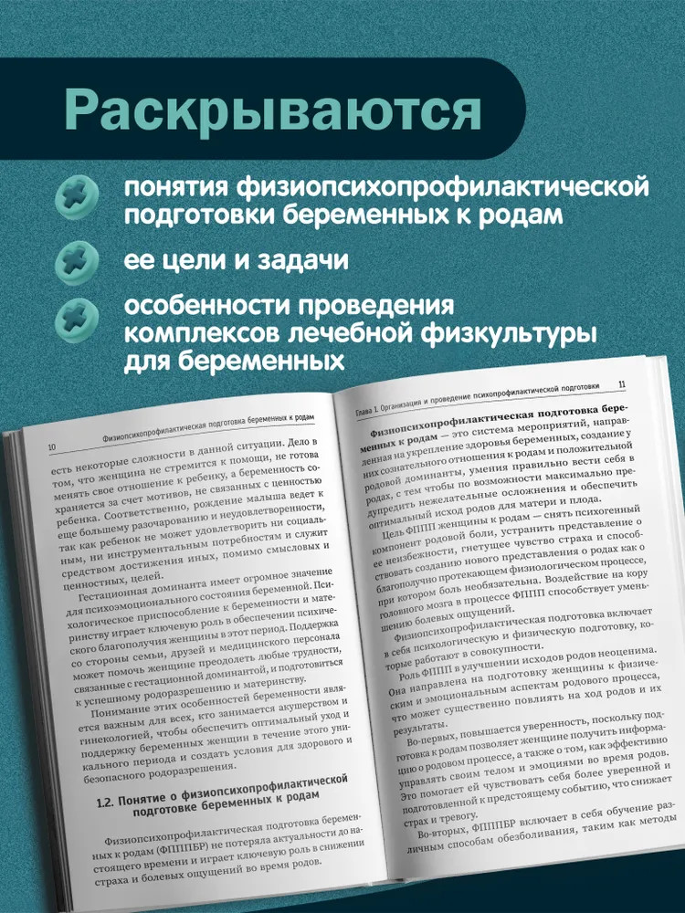 Серия: Среднее медицинское образование Пособие написано в соответствии с требованиями Федерального государственного образовательного стандарта среднего профессионального образования по специальности 31.02.02 «Акушерское дело». В пособии изложены материалы для подготовки к теоретическим, практическим занятиям и учебной практике по ПМ.03.МДК.03.02. Пособие содержит рекомендации для самостоятельного изучения материала обучающимися с целью использования на теоретических и практических занятиях, а также для внеаудиторной деятельности. В пособии раскрываются понятия физиопсихопрофилактической подготовки беременных к родам, ее цели и задачи, особенности проведения комплексов лечебной физкультуры для беременных, методы обезболивания в родах, профилактика осложнений беременности, родов и послеродового периода, а также особенности организации занятий по физиопсихопрофилактической подготовке беременных к родам. Пособие написано в соответствии с ФГОС 4. Издание рекомендовано для студентов и преподавателей медицинских колледжей при изучении ПМ.ОЗ «Осуществление организационной, профилактической работы, формирование здорового образа жизни и санитарно-гигиеническое просвещение» МДК 03.02 «Физиопсихопрофилактическая подготовка беременных к родам» по специальности 31.02.02 «Акушерское дело». |