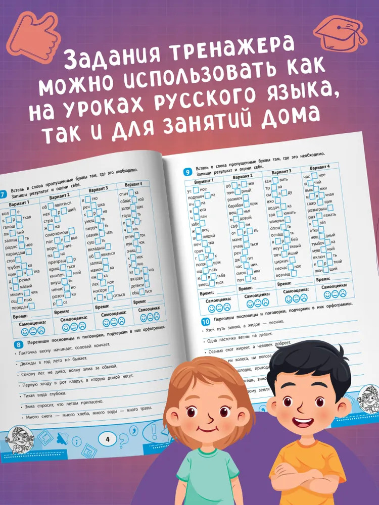 Серия: Грамотей-ка! В сборнике представлен комплекс заданий на запоминание и закрепление орфограмм, с которыми дети знакомятся в начальной школе. Смайлики для самооценки и отметки о времени выполнения заданий могут отслеживать динамику формирования правописных навыков. Задания тренажера можно использовать как на уроках русского языка, так и на занятиях дома. Пособие адресовано младшим школьникам и их родителям, учителям начальных классов, репетиторам. |