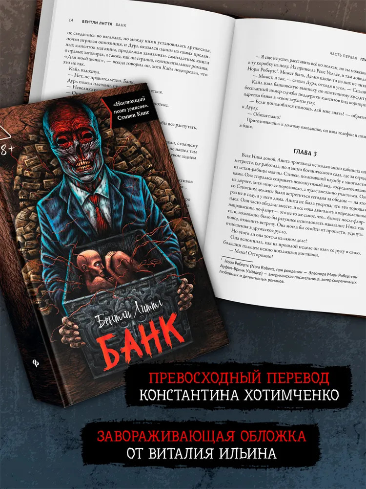Серия: Короли ночи Банковское дело существует очень давно. В общем-то так же, как и зло. Итак, однажды вы узнаете, что открылся банк, который раздает налево и направо беспроцентные кредиты и готов с легкостью финансировать весьма сомнительные стартапы, да вдобавок выдает ссуды на самые темные фантазии и желания... Скажете — сказка? Да. Но это очень страшная сказка. Жители небольшого городка Монтгомери столкнулись с таким банком наяву. «Первый Народный» возник из ниоткуда всего за одну ночь и стал разрастаться подобно настоящей эпидемии, сея раздоры, смерть и хаос. Можно ли остановить этот ужас? Можно, но какой ценой! Проверьте свой почтовый ящик — возможно, подобный банк ближе, чем вам кажется! |