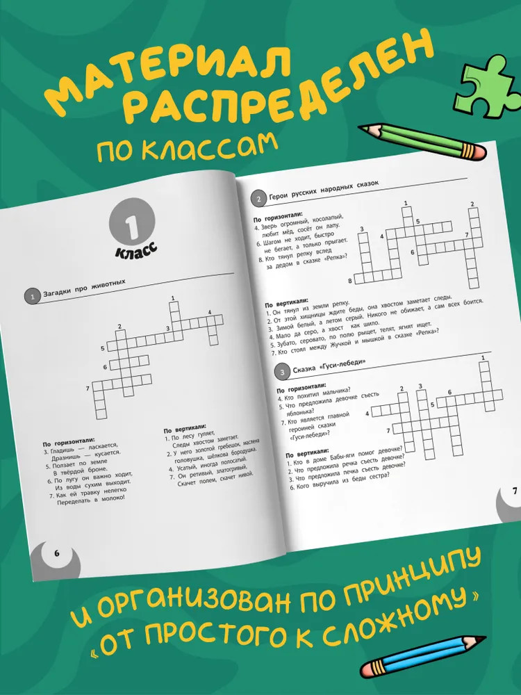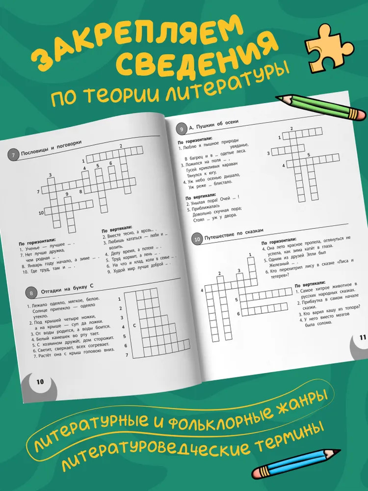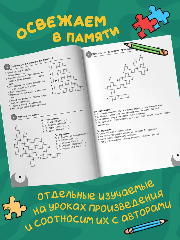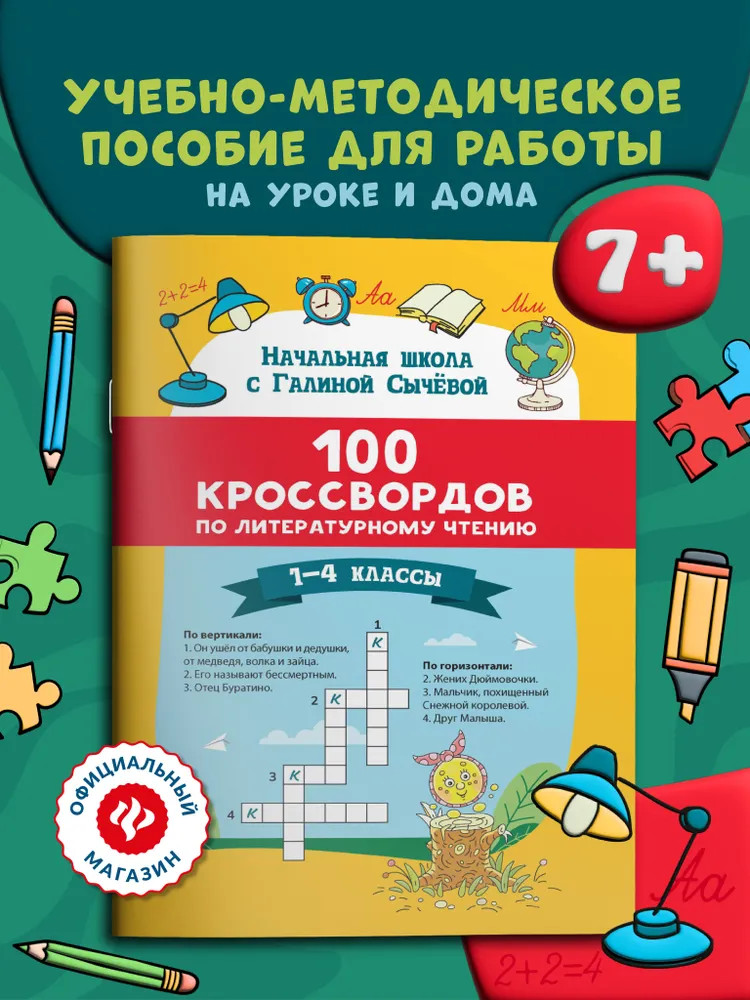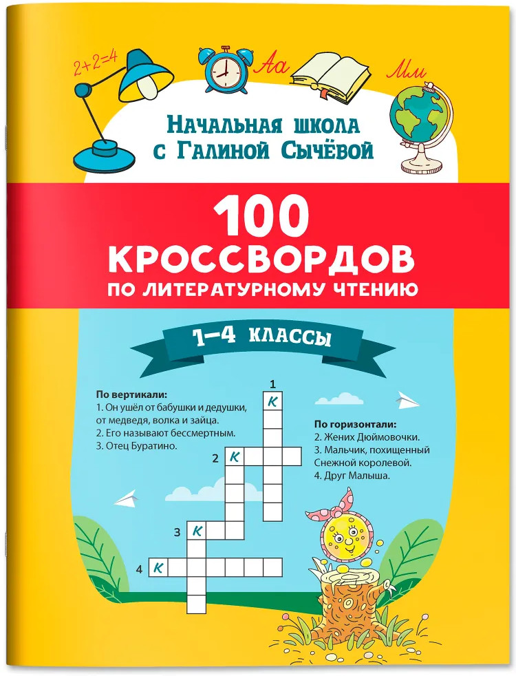 Серия: Начальная школа с Галиной Сычевой «100 кроссвордов по литературномучтению: 1-4 классы» — учебно-методическое пособие для работы на уроке и дома, составленное на основе федеральной образовательной программы начального общего образования. Каждый кроссворд посвящен одной или нескольким темам программы; материал распределён по классам и организован по принципу «от простого — к сложному». |