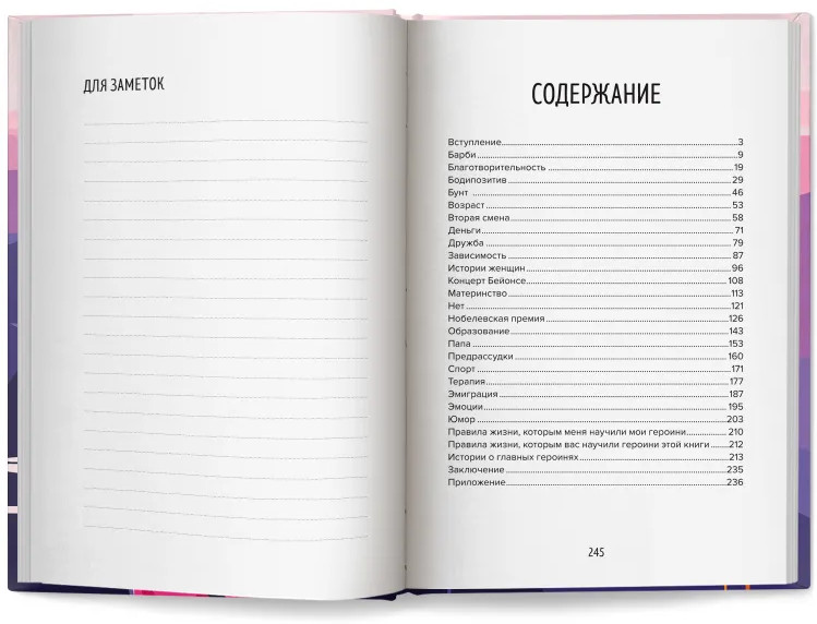 Каждая глава — тема, которая волнует современную женщину: внешность, возраст, семья, дети, карьера, деньги, путешествия, хобби, саморазвитие. Рассказы из жизни выдающихся женщин раскрывают эти темы с новых сторон, а вопросы для саморефлексии делают книгу не просто сборником историй, а инструментом для лучшего понимания себя.
