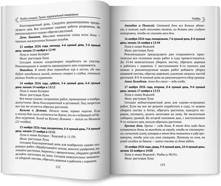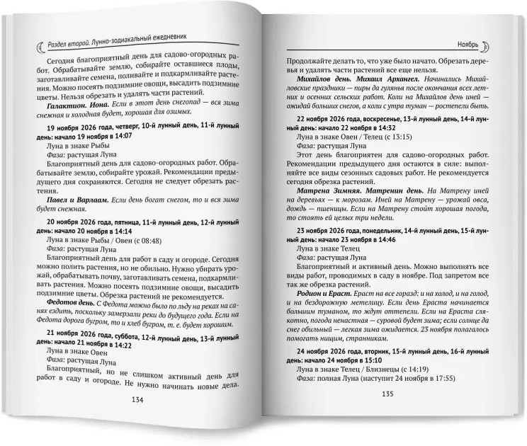 В календаре содержатся необходимые для любителей сада и огорода сведения и рекомендации на каждый день 2026 года, которые помогут ориентироваться в различных видах садово-огородных работ с учетом влияния Луны на рост и развитие растений. |