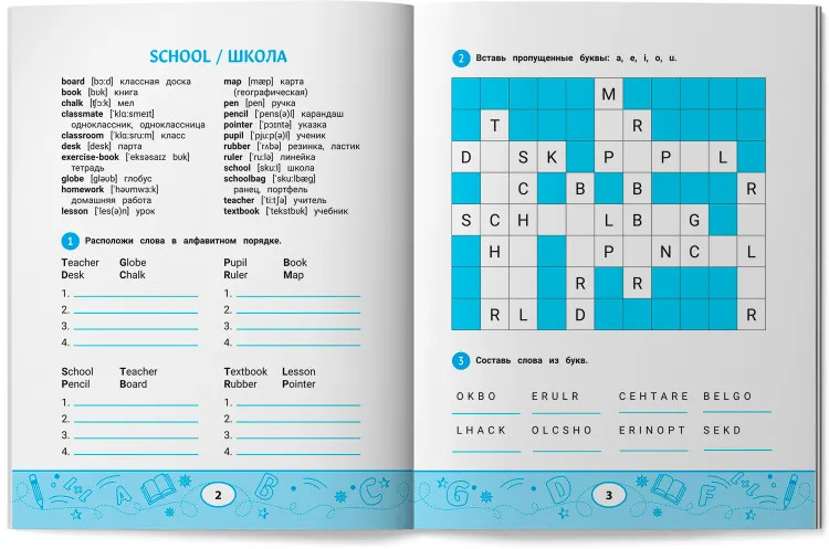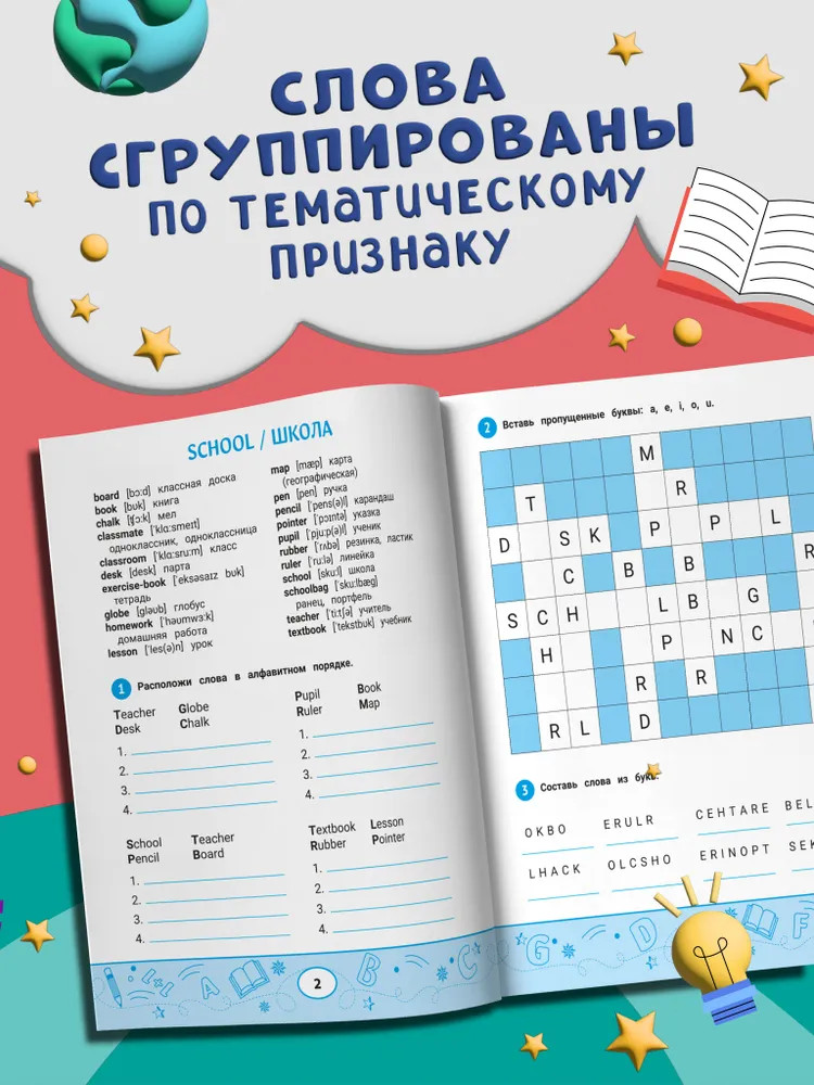 Серия: Пиши-читай Словарик по английскому языку, составленный в помощь учащимся начальной школы, знакомит детей с лексикой по темам «Школа», «На уроке», «Числа и цифры», «Цвета», «Игрушки», «Спорт». |