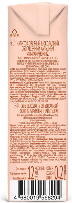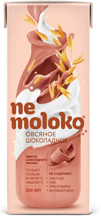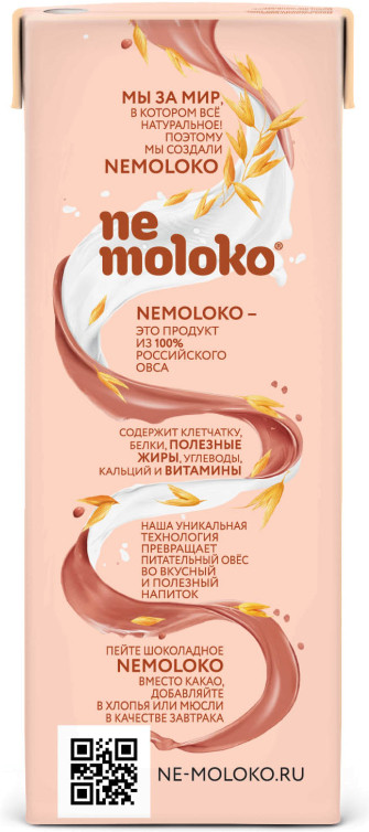 Когда хочется очень вкусного и полезного, на помощь приходит Nemoloko овсяное шоколадное. О пользе овса можно говорить часами — полезный, питательный, вкусный. Второй компонент — шоколад — не менее питательный продукт, обладающий тонизирующим и освежающим действием. Пейте с удовольствием на завтрак и в течение дня. Добавляйте в мюсли или просто пейте как горячий шоколад. Продукт обогащен кальцием и витамином В2.