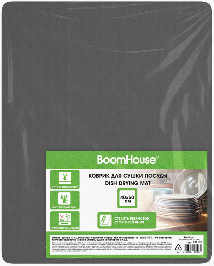 Коврик для сушки посуды Boomhouse с диатомитовым слоем эффективно впитывает влагу и быстро сохнет, обеспечивая чистоту и порядок на кухне. Стильный и гигиеничный аксессуар идеально подойдёт для тех, кто заботится о собственном комфорте! Нано-коврик для сушки посуды Boomhouse – это современное гигиеничное решение для кухни, объединяющее в себе высокую функциональность и инновационные материалы. |