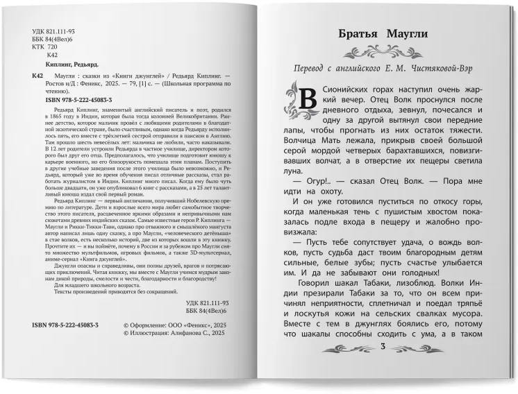 Серия: Школьная программа по чтению Редьярд Киплинг, знаменитый английский писатель и поэт, родился в 1865 году в Индии, которая была тогда колонией Великобритании. Раннее детство, которое мальчик провёл с любящими родителями в благодатной экзотической стране, было счастливым, однако когда Редьярду исполнилось пять, его вместе с трёхлетней сестрой отправили в пансион в Англию. Там прошло шесть невесёлых лет: мальчика не любили, часто наказывали. В 12 лет родители устроили Редьярда в частное училище, директором которого был друг его отца. Предполагалось, что училище подготовит юношу к карьере военного, но его близорукость помешала этим планам. Поступить в другие учебные заведения после этого училища было невозможно, и Редьярд, который уже во время обучения писал отличные рассказы, стал работать журналистом в Индии. Киплинг много писал. Когда ему было чуть больше двадцати, он уже опубликовал 6 книг с рассказами, а в 25 лет талантливый юноша издал свой первый роман. Редьярд Киплинг — первый англичанин, получивший Нобелевскую премию по литературе. |