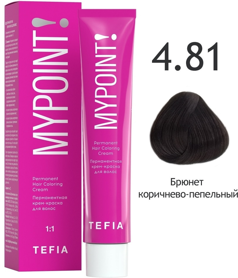 Крем-краска для волос, оттенок 4.81 Брюнет коричнево-пепельный | Mypoint | Tefia