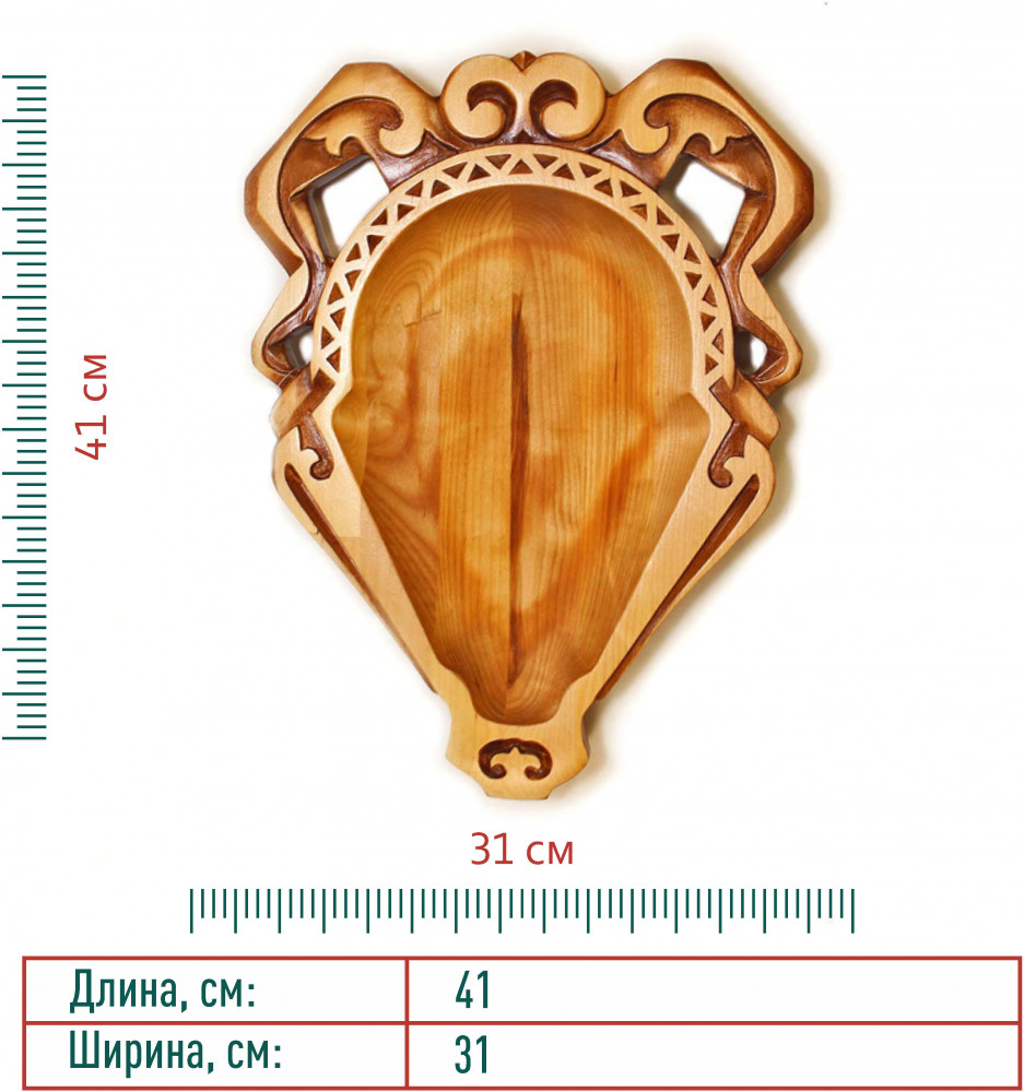 Тарелка «Бас» — изящное и функциональное изделие ручной работы, созданное для традиционной подачи головы барана. Изготовлена из натуральной берёзы, имеет немного вытянутую треугольную форму длиной 41 см. Тарелочка украшена резным орнаментом и стилизованным образом головы барана. Ажурные рога с прорезными элементами придают изделию лёгкость и утончённость. Каждая деталь выполнена с высокой степенью мастерства и вниманием к традициям. |