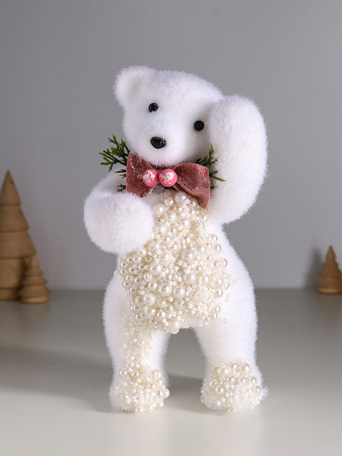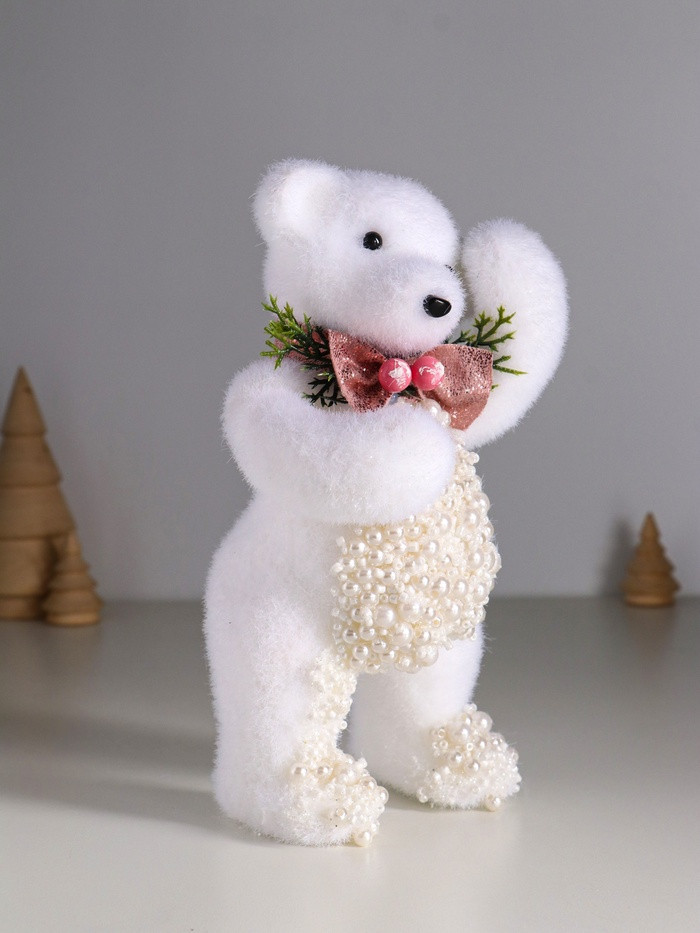 Фигурка «Белый мишка с бантиком в бусинках»новинка -25%