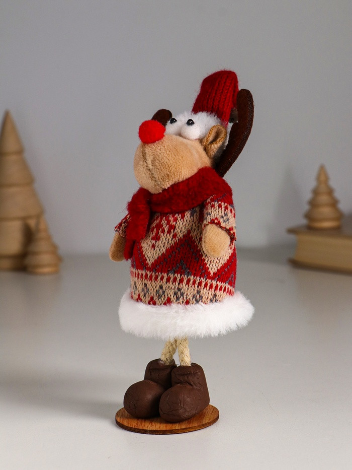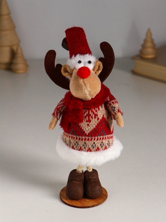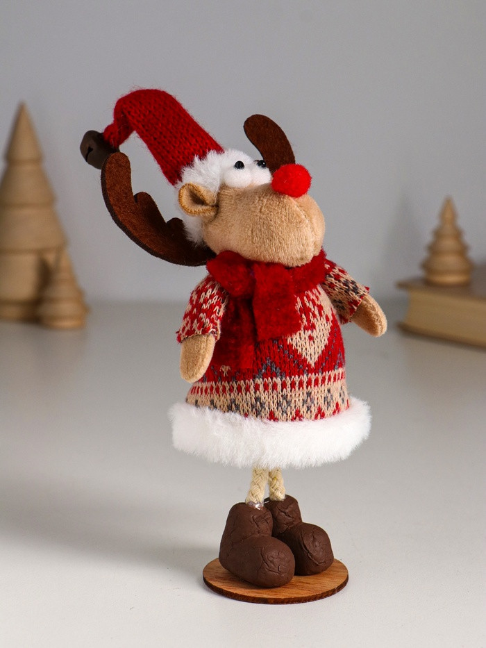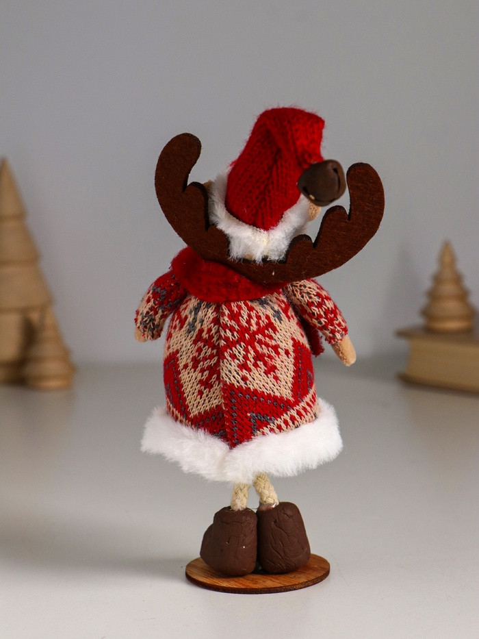 Фигурка «Лосик в вязаной шубе с узорами, в колпаке с колокольчиком»новинка -25%