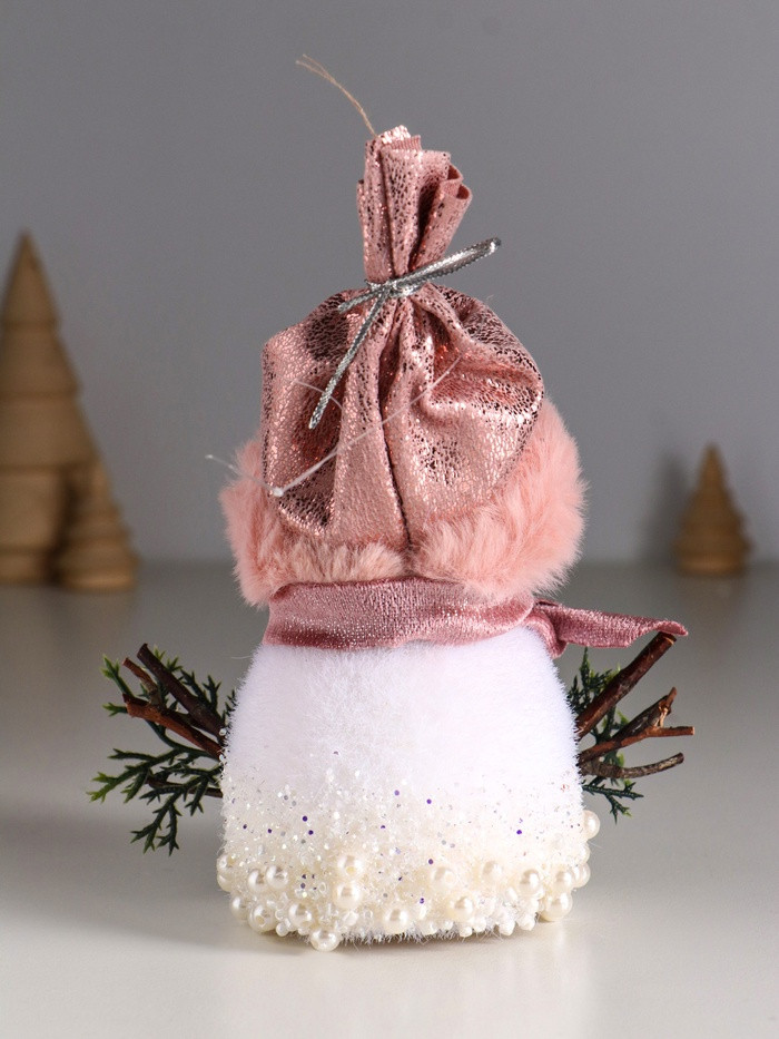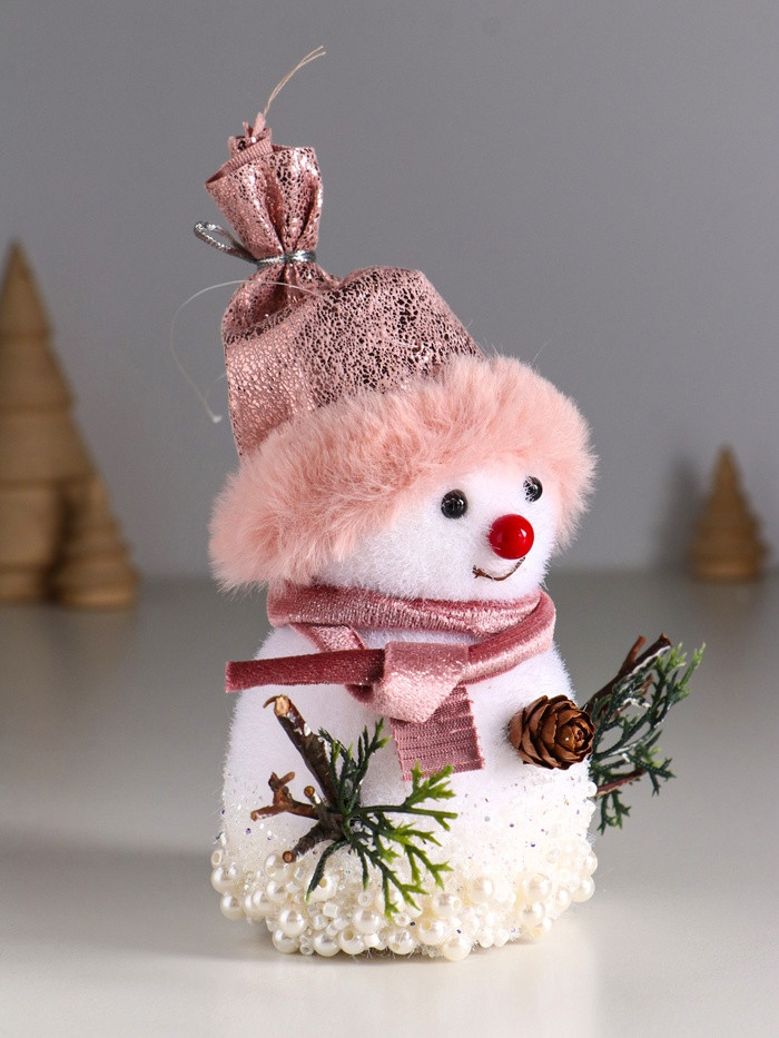 Фигурка «Снеговичок в розовом колпаке в бусинках»новинка -40%