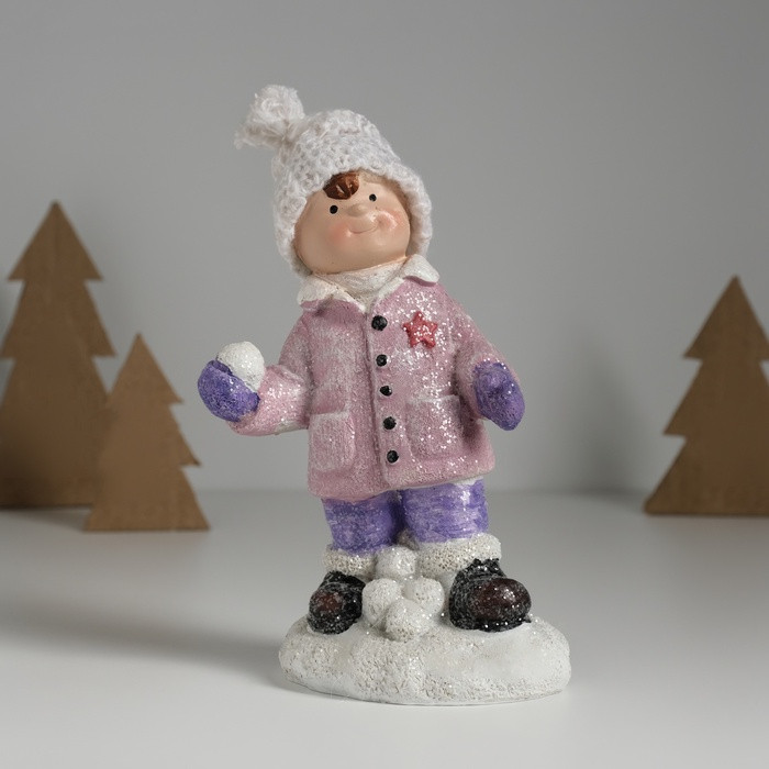 Фигурка «Мальчик в розовой курточке со снежком»новинка -25%