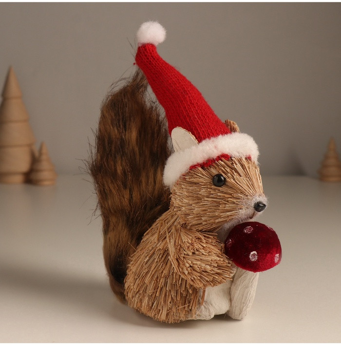 Фигурка новогодняя «Белочка с грибочком в новогоднем колпаке»новинка -25%
