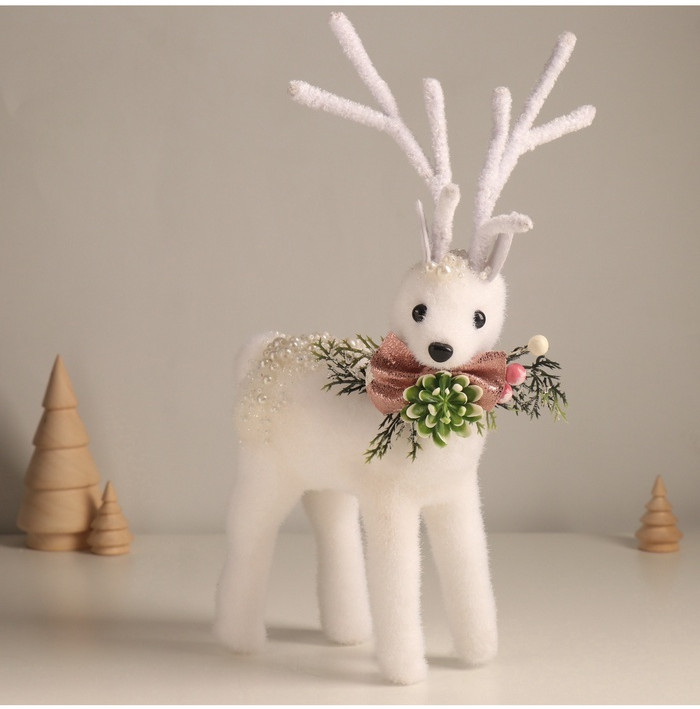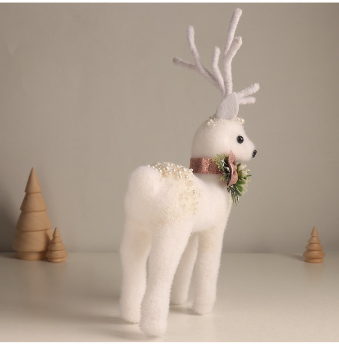 Фигурка новогодняя «Белый олень в бусинках»новинка -25%