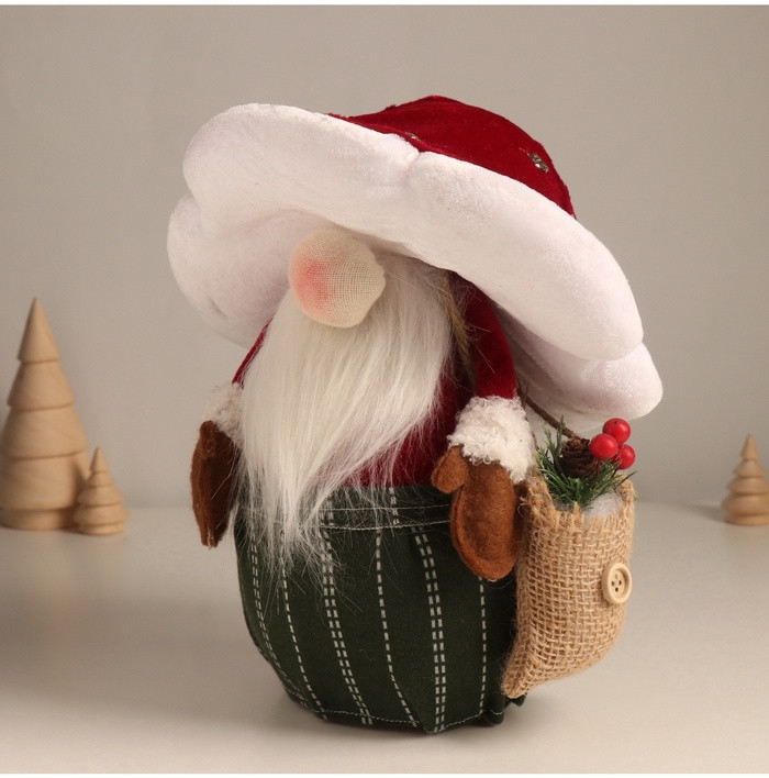 Фигурка новогодняя «Дедушка-мухомор с еловыми ветками в мешке»новинка -25%