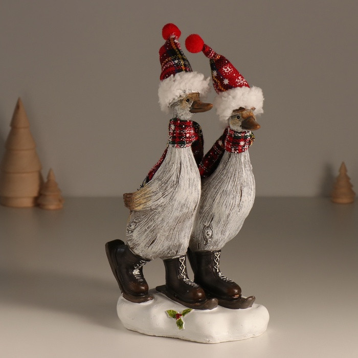 Фигурка «Гуси в колпаках на мини-лыжах»новинка -40%