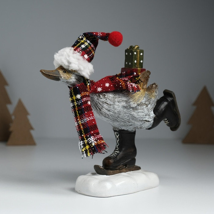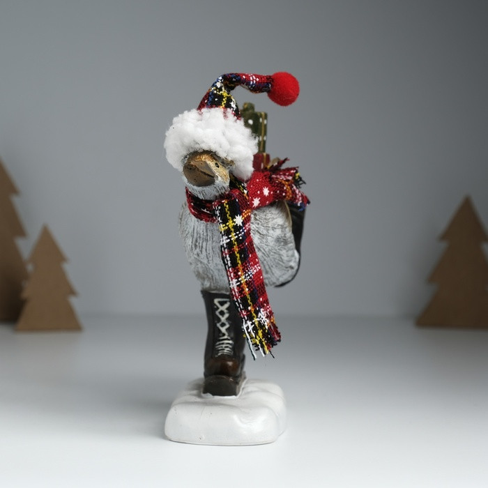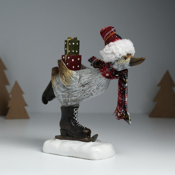 Фигурка «Гусь в колпаке, вязаном шарфе, на мини-лыжах, с подарками»новинка -25%