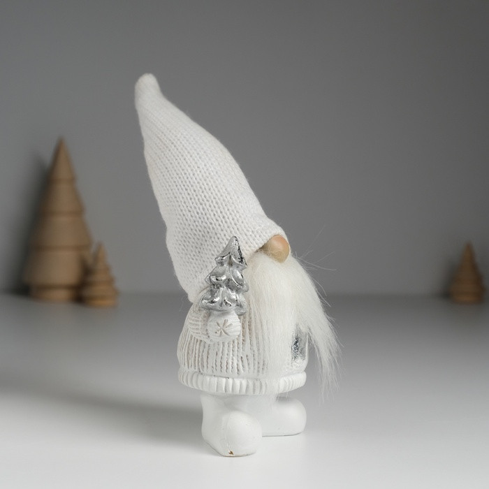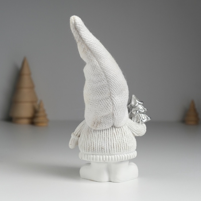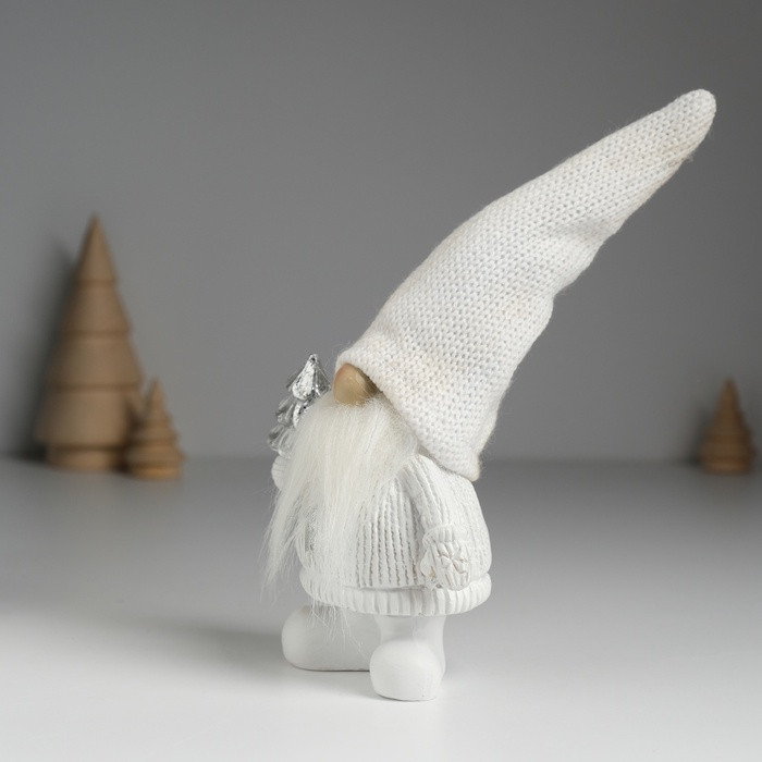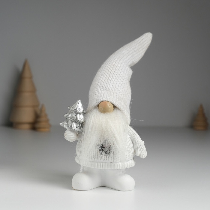 Фигурка «Дед Мороз в белом вязанном колпаке, с серебристой ёлочкой»новинка -25%