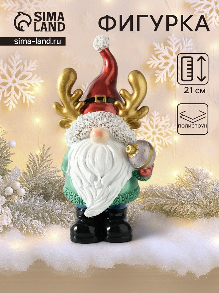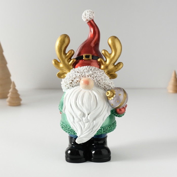 Фигурка «Дед Мороз в колпаке с рожками, с ёлочным шариком»новинка -35%