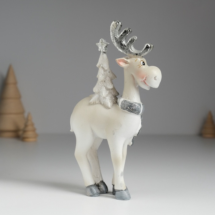 Фигурка «Олень с серебристыми рогами, с белой ёлкой на спине»новинка -25%